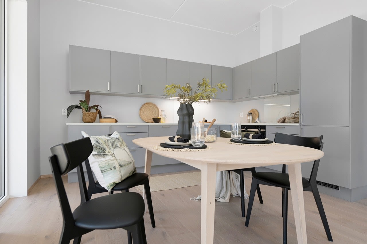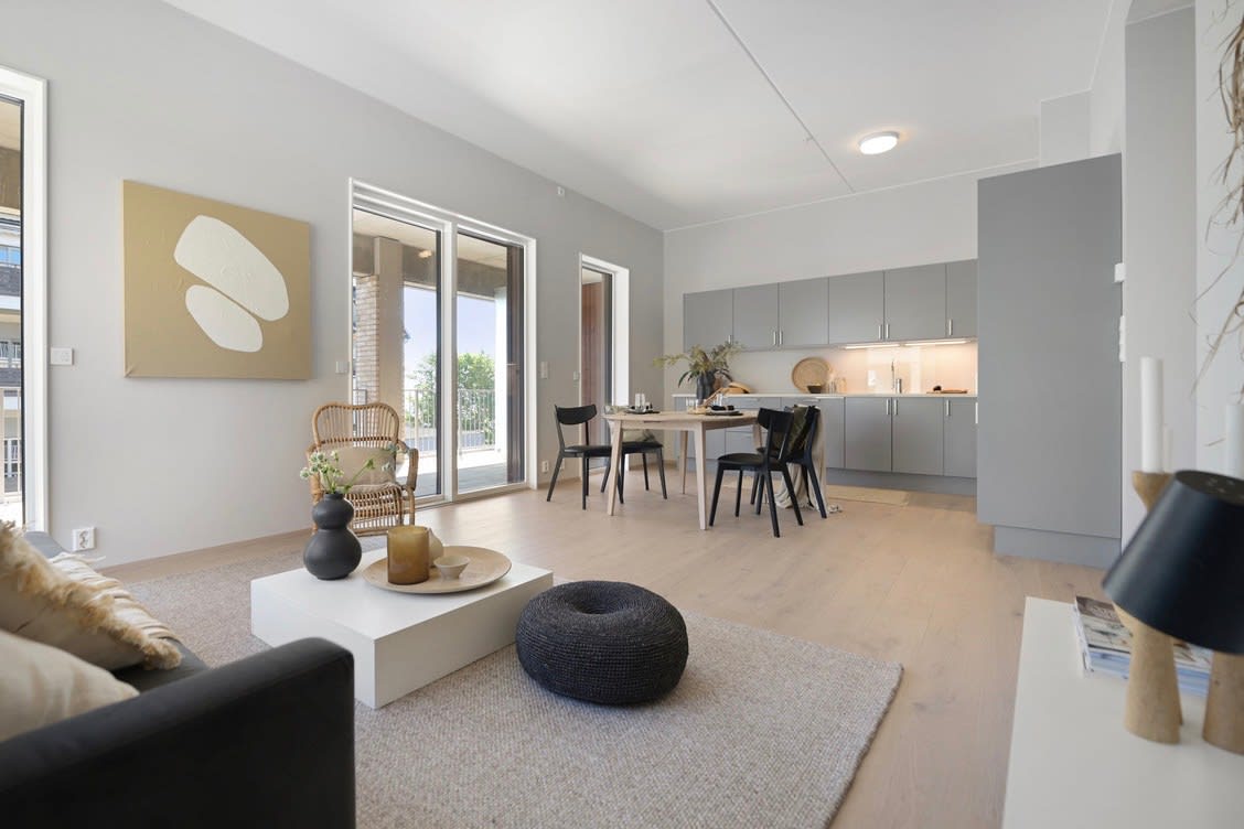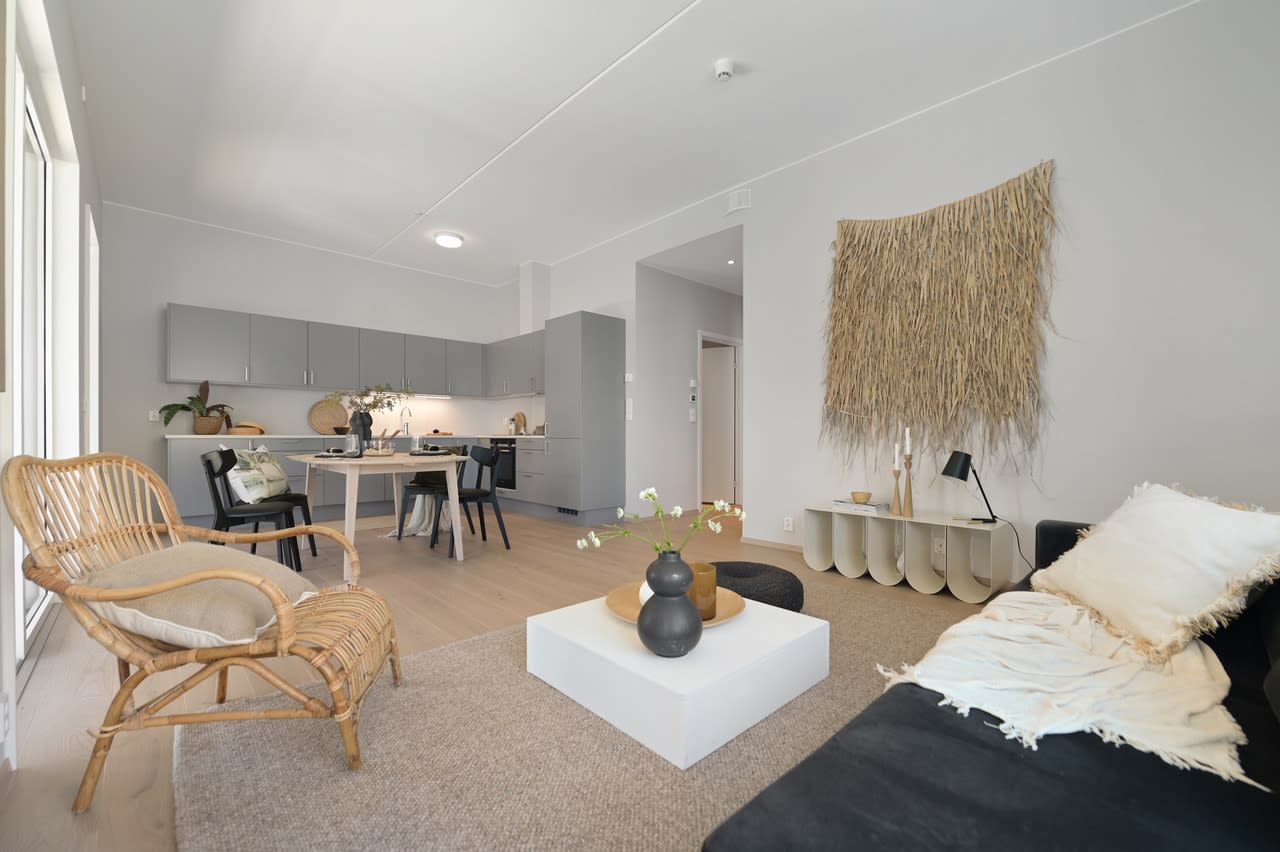 Fra entréen er det adkomst til vaskerom/bod, et deilig bad samt et soverom med gode garderobe- muligheter. Åpen og fin stue med stort kjøkken og hyggelig spiseplass. Dra til side balkongdørene og nyt en herlig uteplass på hele 19 kvm.