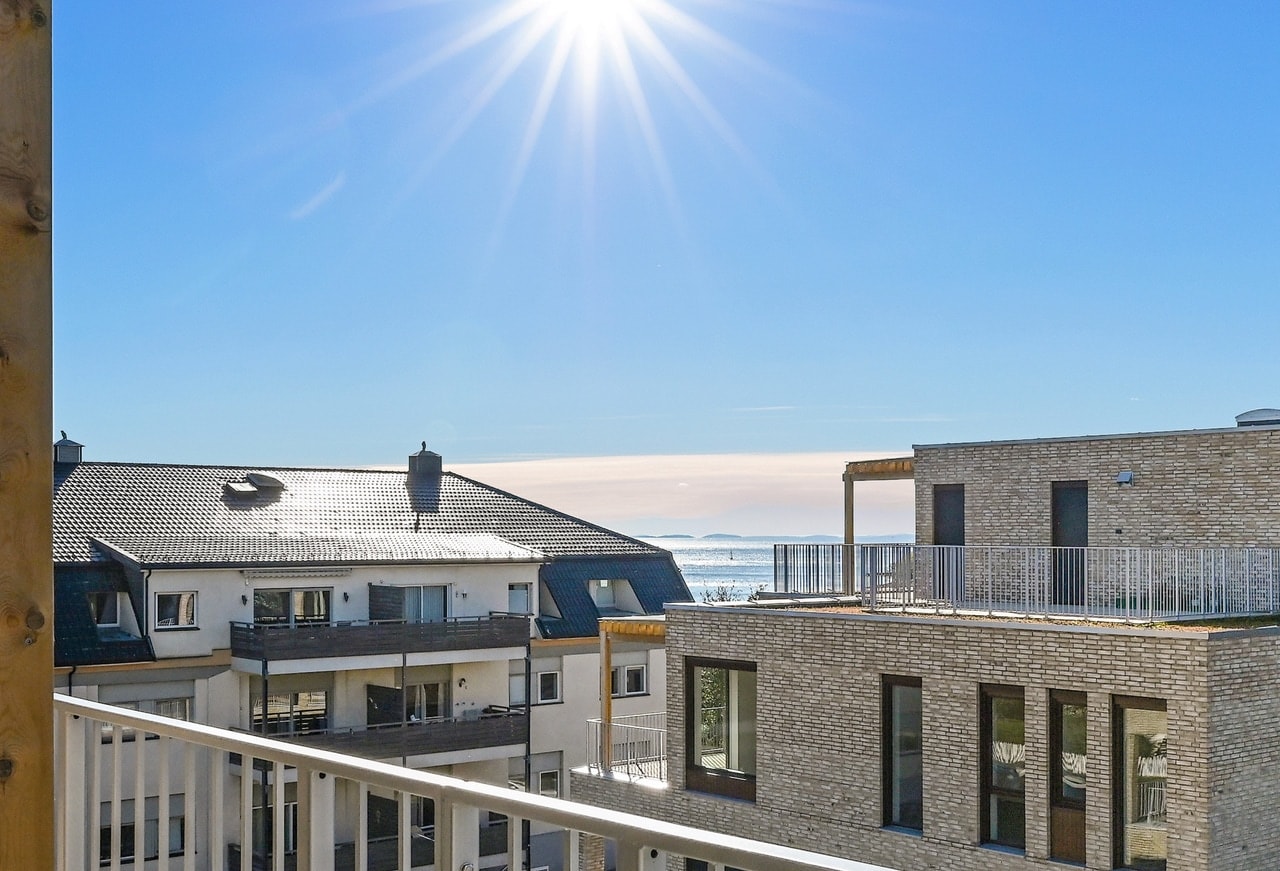 med to skyvedører som tilfører ekstra areal i stuen. Hyggelig kjøkken og utgang til vestvendt balkong.